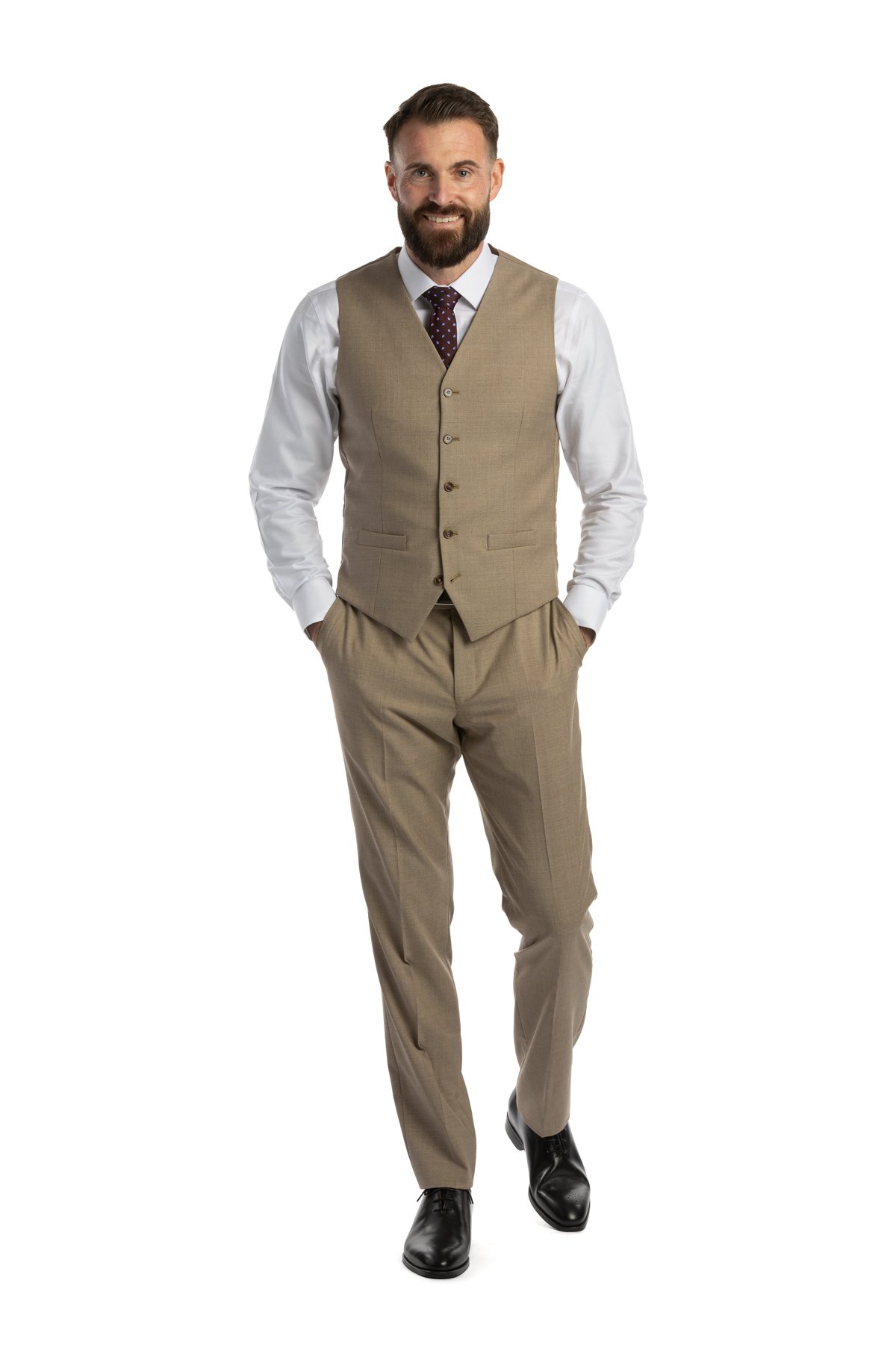 Oblek Verona v elegantním béžovém odstínu je součástí naší kolekce inspirované Itálii. Oblek je navržený s důrazem na italskou eleganci a precizní řemeslnou práci, je ideální volbou pro svatby, formální události, ale i pro každodenní nošení, pokud chcete vypadat výjimečně.