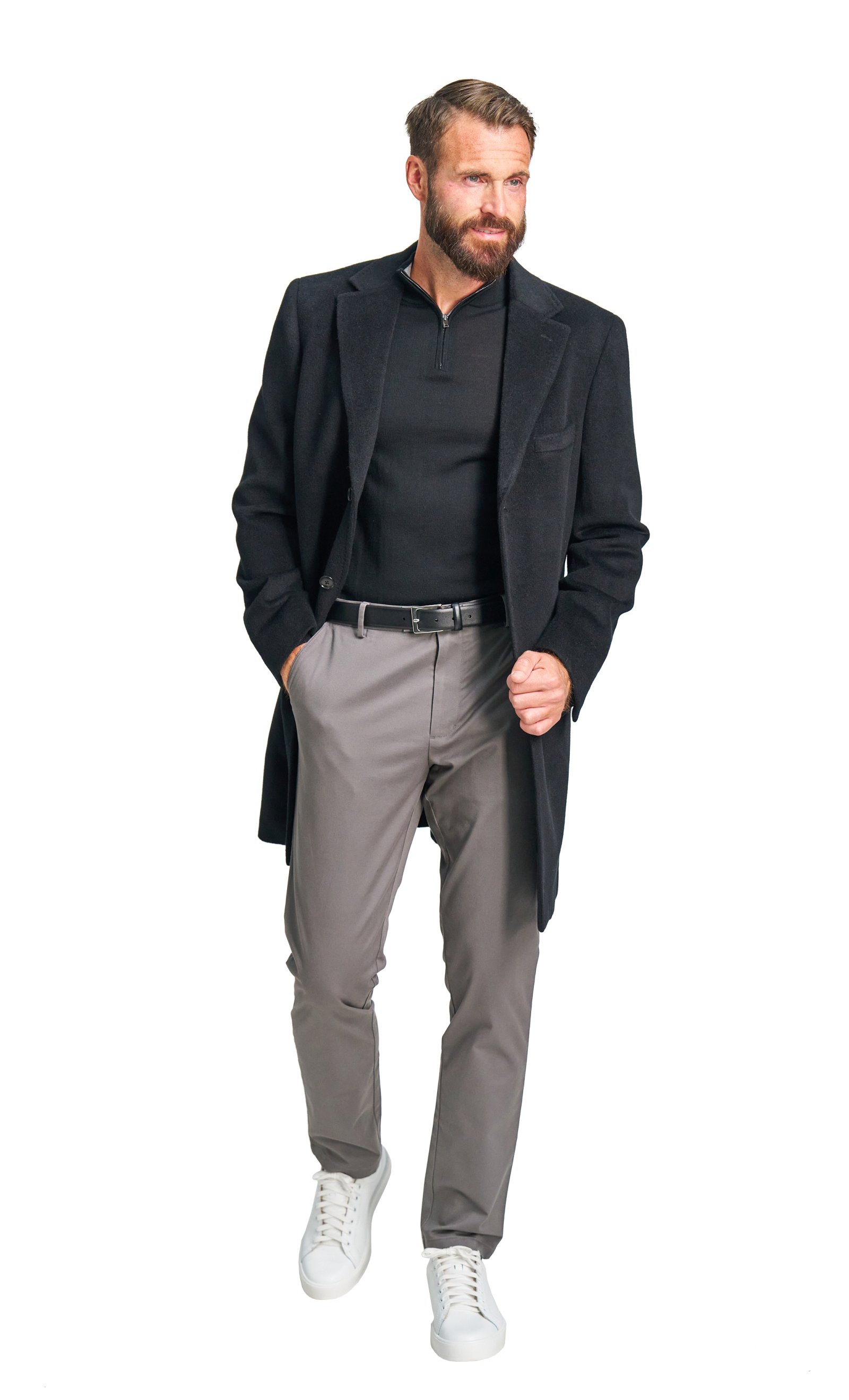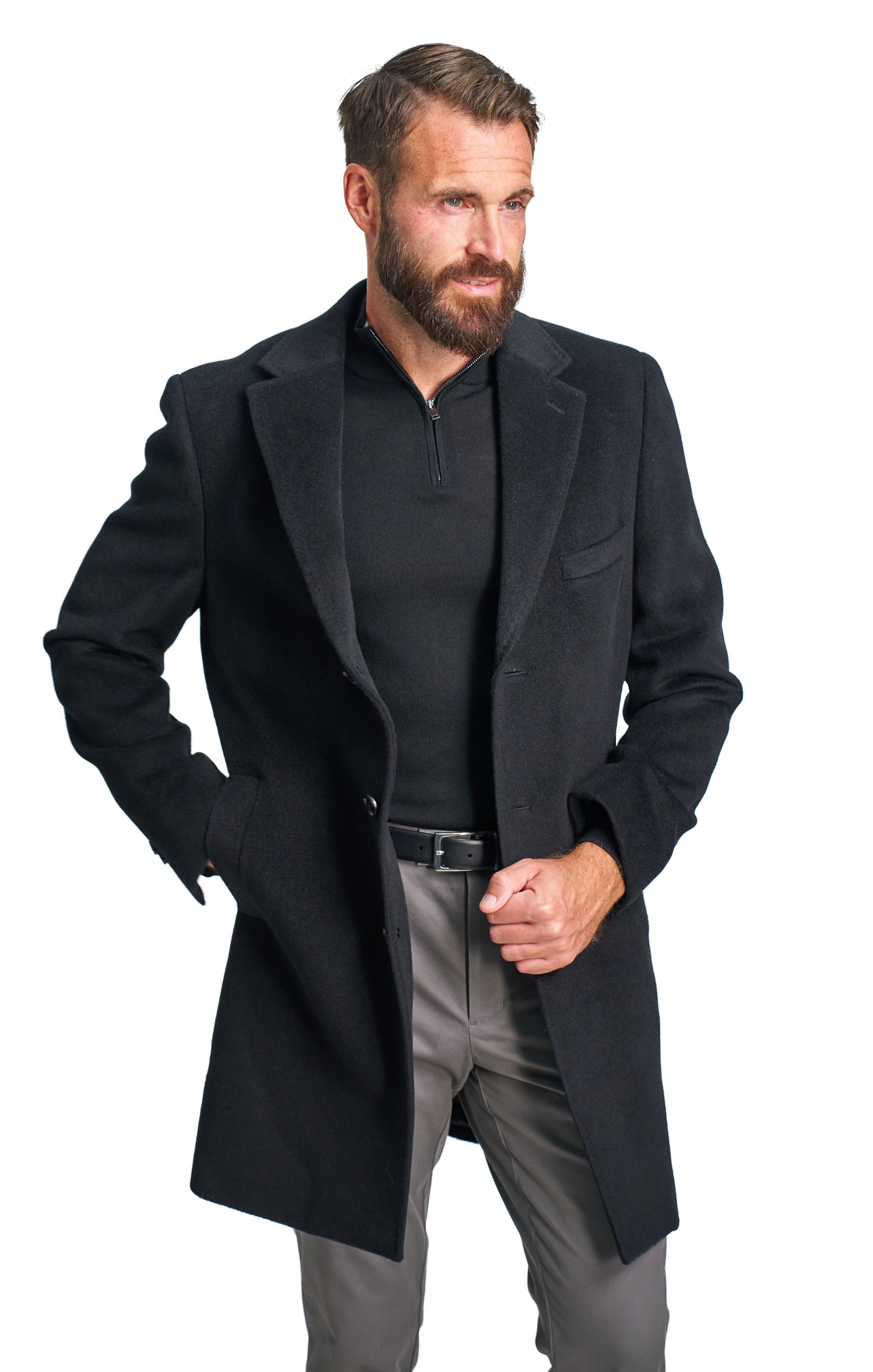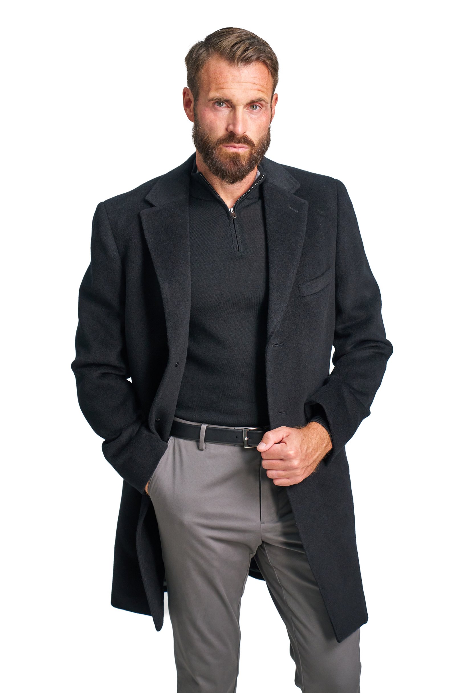 Tento černý kabát Cheltenham je ideálním kousek do vašeho šatníku. Látka utkána ze 100% vlny, která vás zahřeje v chladných dnech. Díky jemně vyštíhleném střihu, pro vytvoření moderní siluety a nadčasovému designu, se bude tento kabát skvěle hodit, jak přes oblek, tak přes váš oblíbený volnočasový outfit. Doplňte outfit o oblíbené chinos kalhoty či svetr.