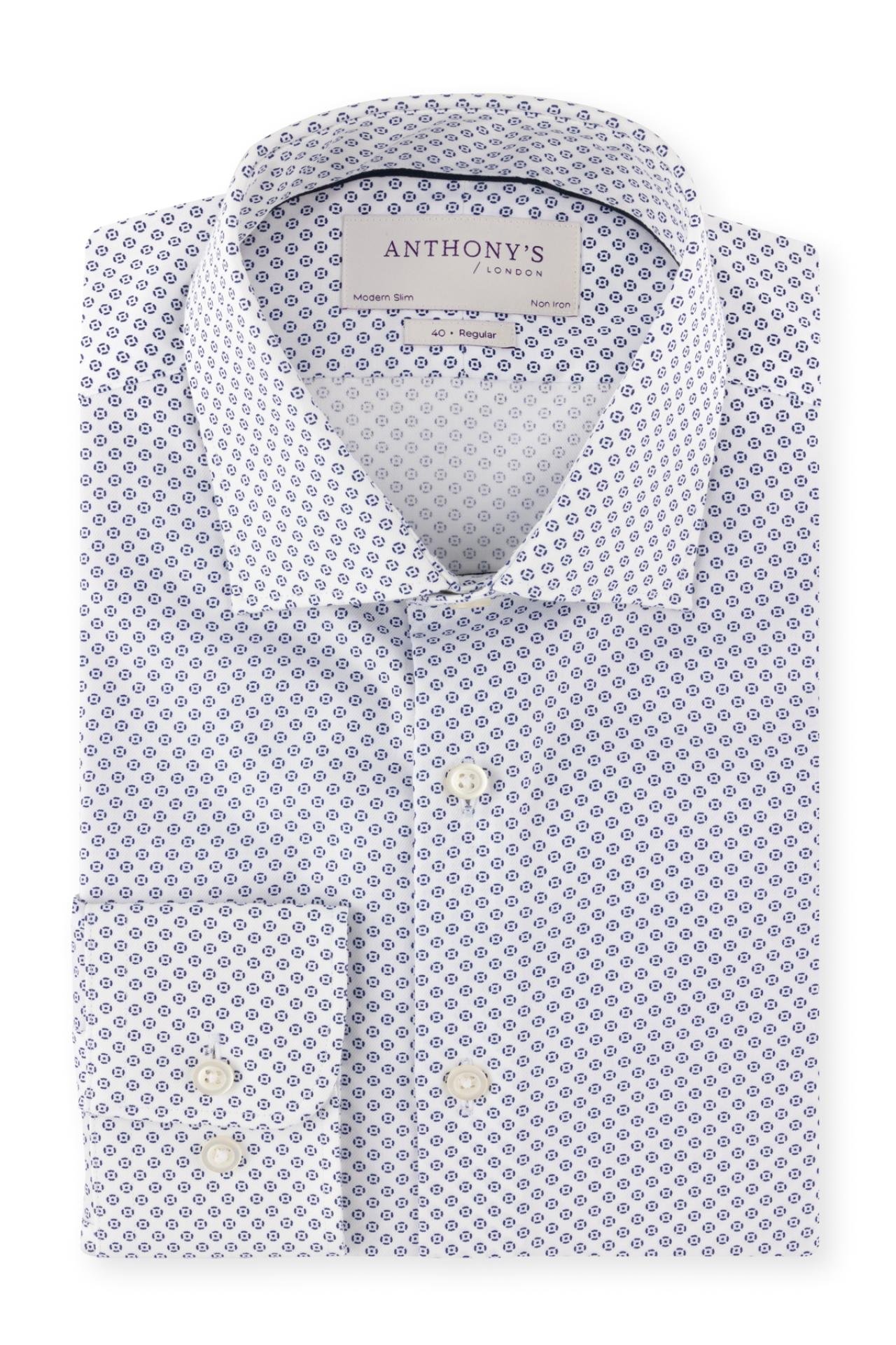 Košile Modern Slim SC NI Print Geo White Navy Shirt