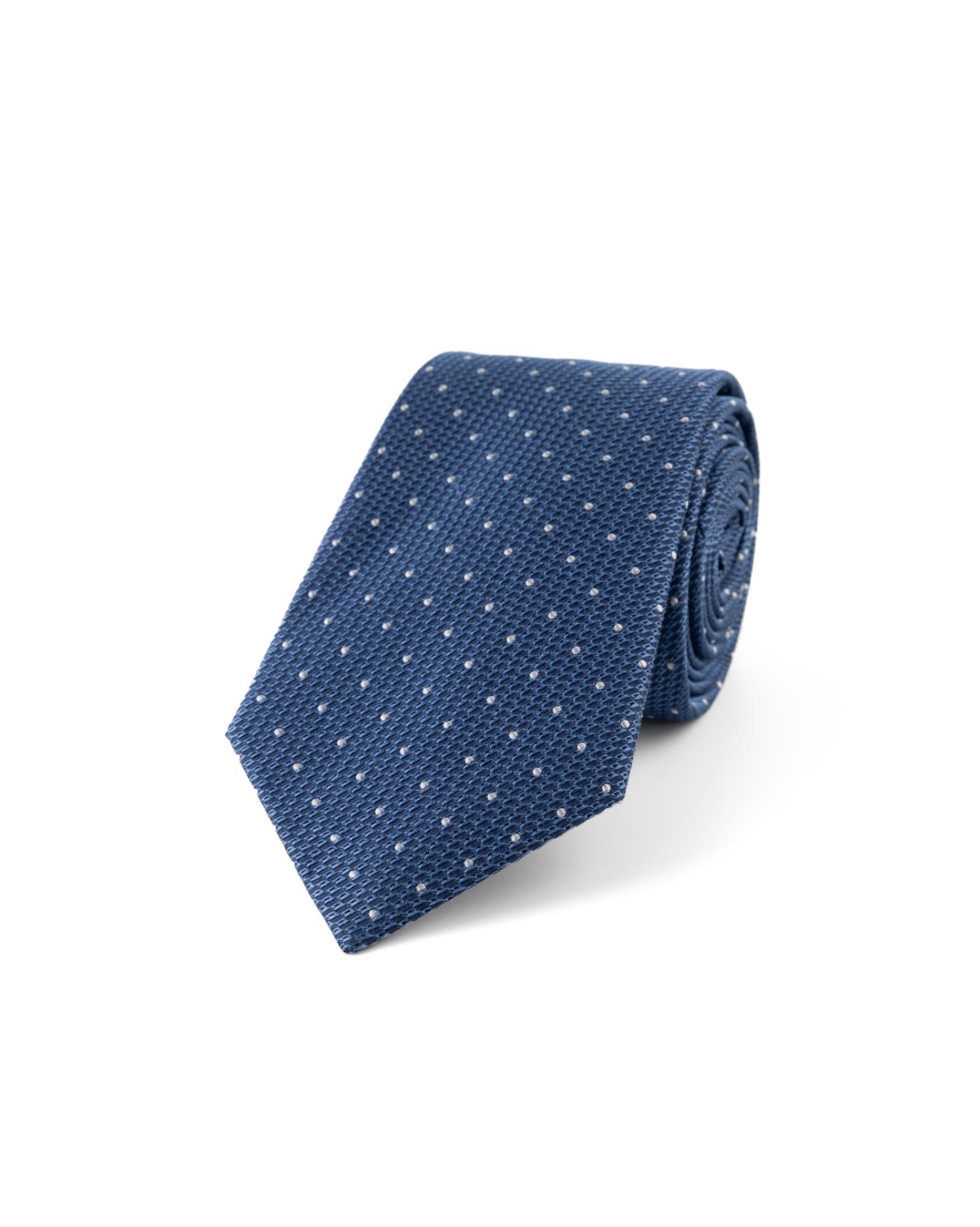 Modrá hedvábná kravata s puntíkem