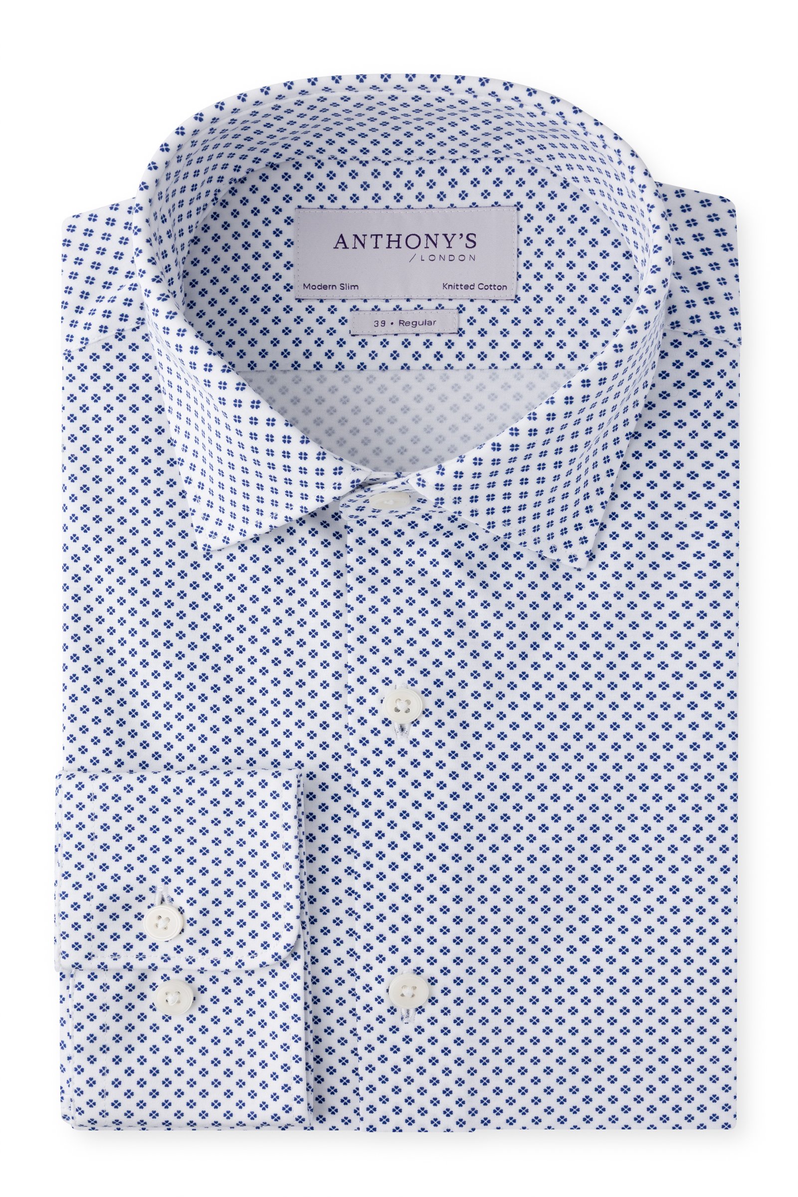 Pánská bílomodrá strečová košile s květinový vzorem