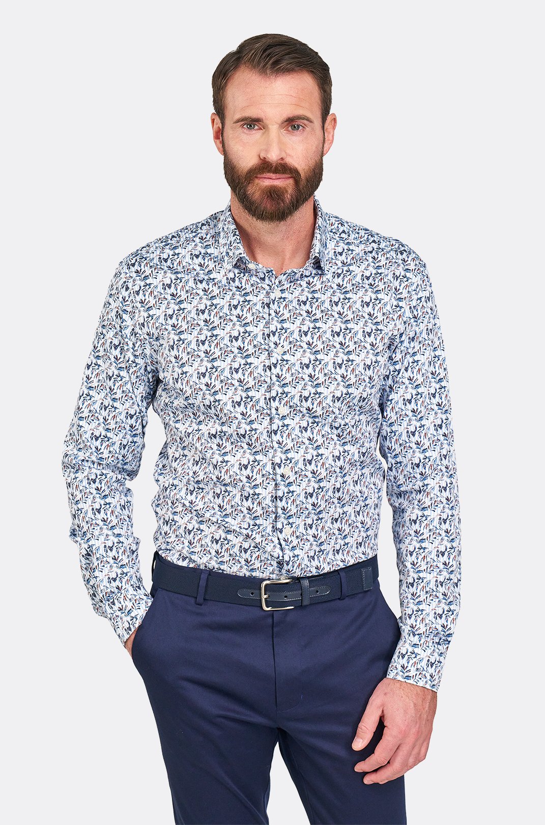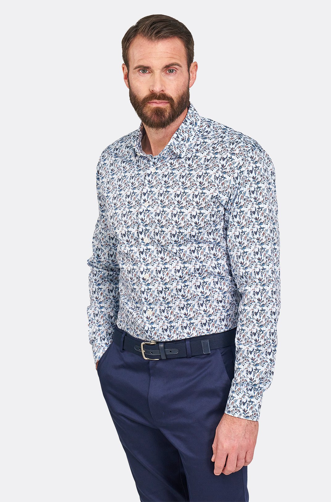 Modrá strečová košile se vzorem