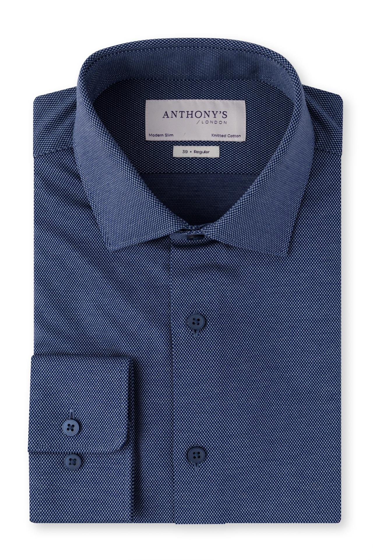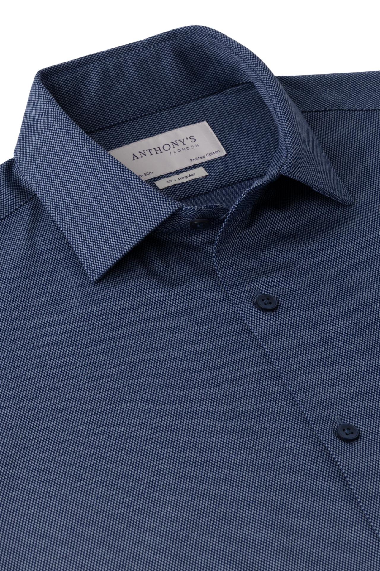 Pánska tmavě modrá strečová košile s jemným vzorem