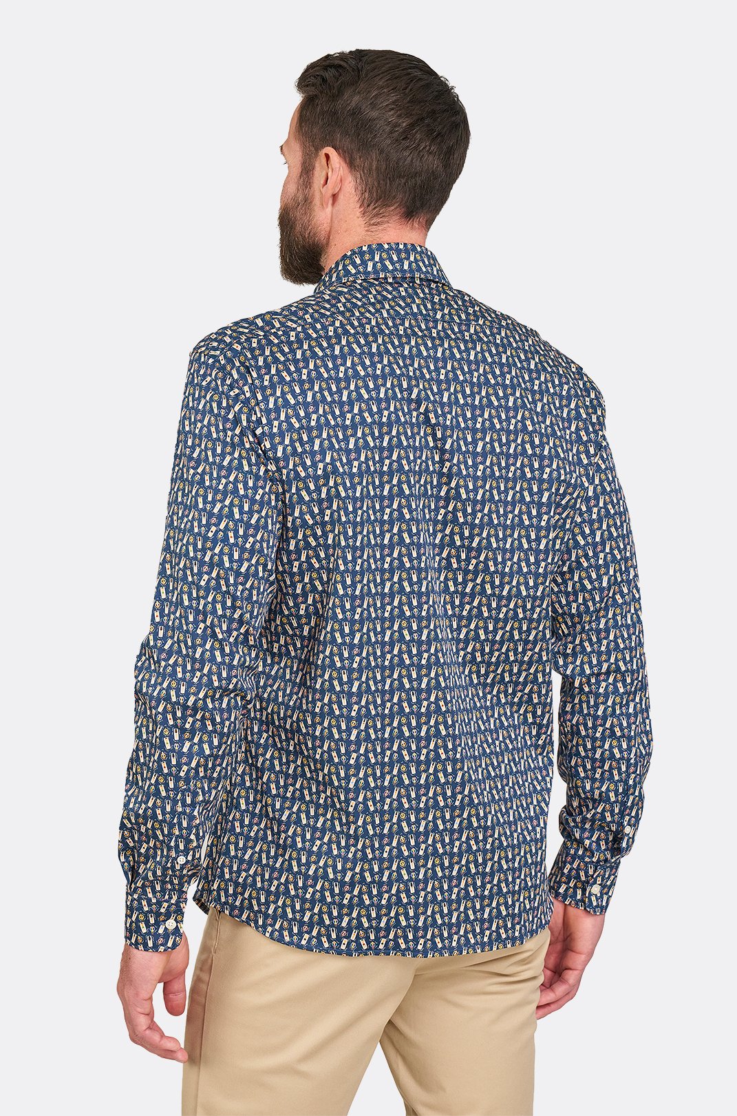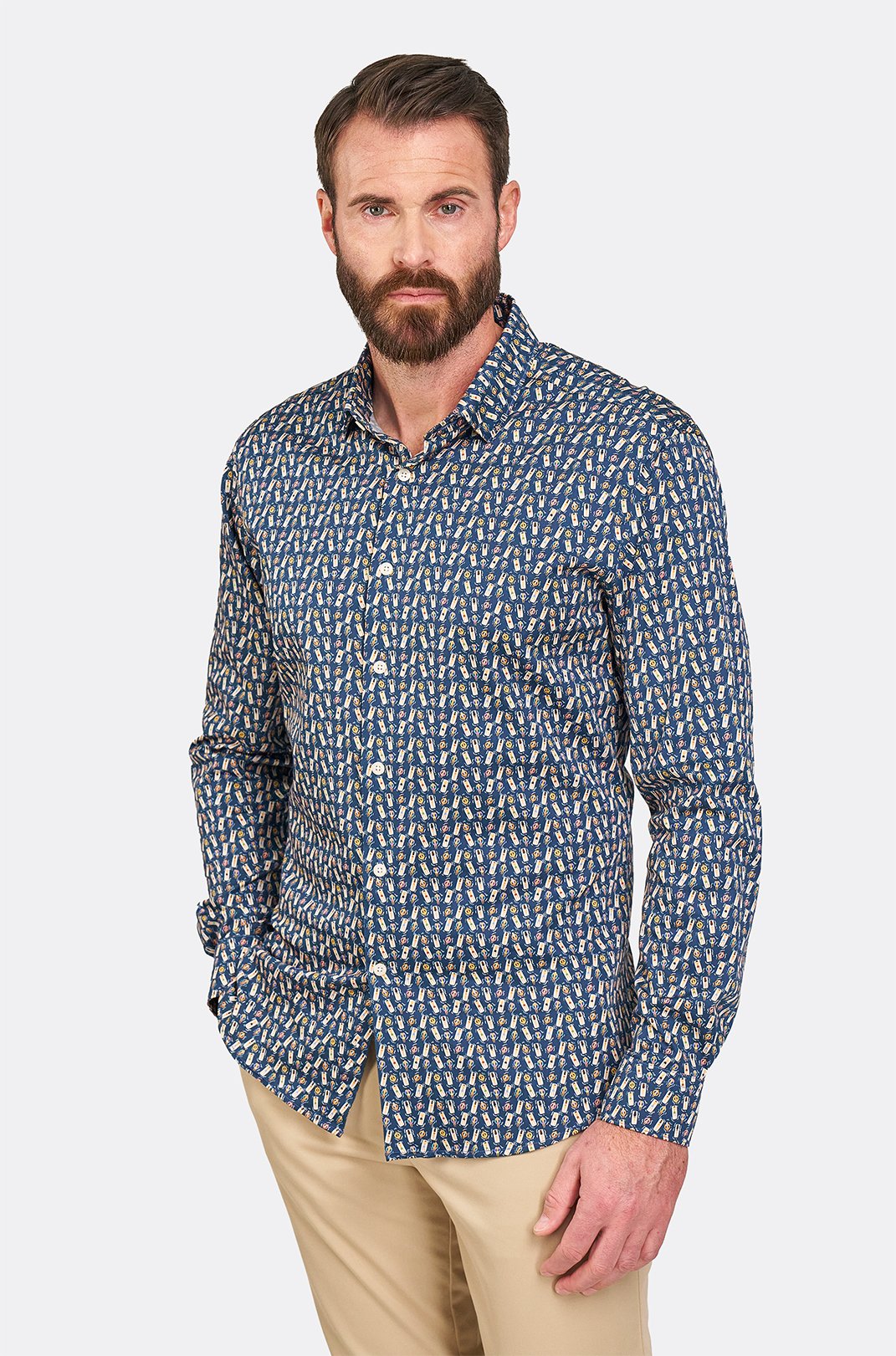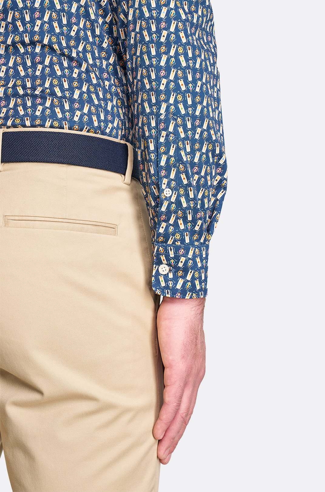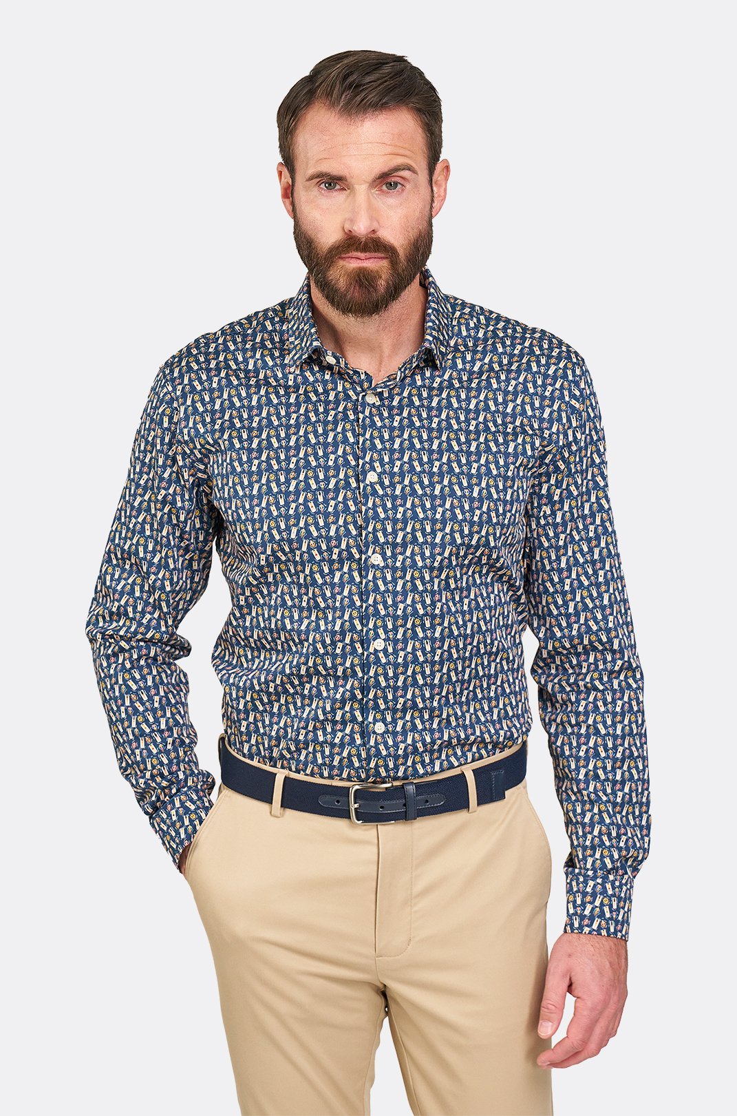 Pánská tmavě modrá strečová košile se vzorem