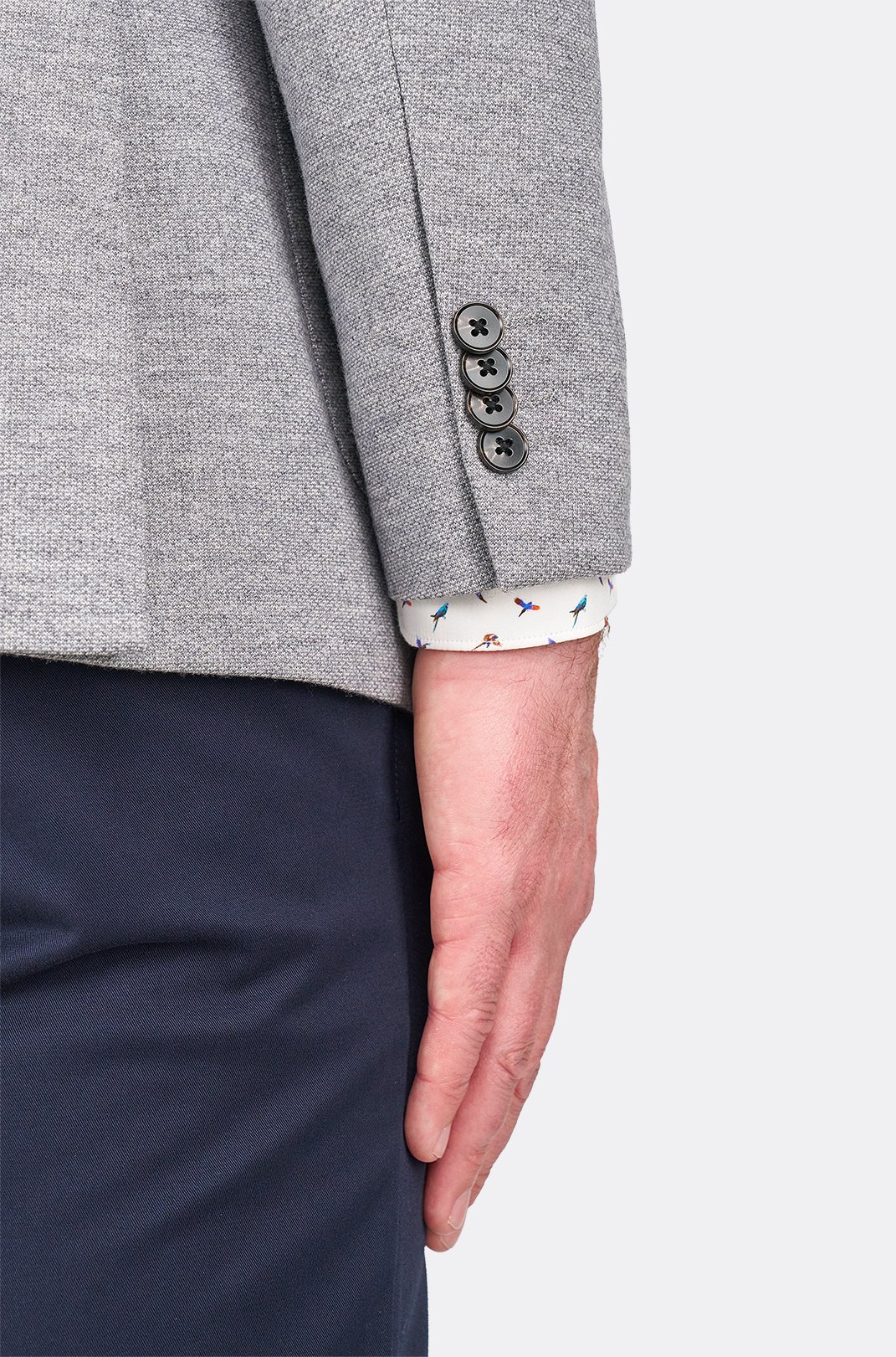 Materiál s vysokým podílem vlny zajišťuje přirozené teplo a prodyšnost, zatímco nylon dodává saku pevnost, odolnost a schopnost držet tvar i při častém nošení. Příměs polyesteru zvyšuje odolnost proti mačkání a usnadňuje údržbu, zatímco bavlna přispívá k měkkosti a komfortu při kontaktu s pokožkou.