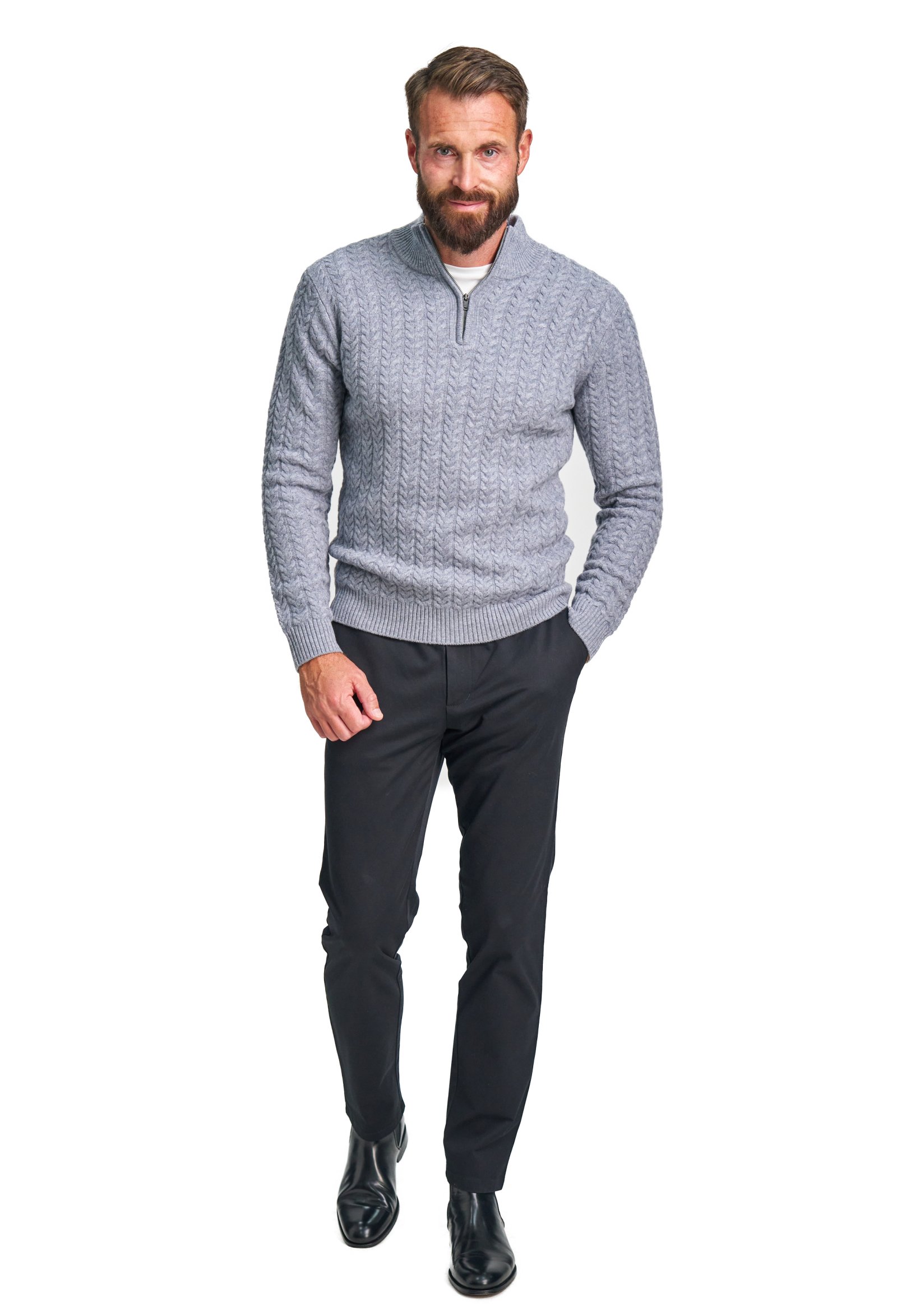 Pletený vzor a praktický zip dodají svetru sofistikovaný vzhled, zatímco jeho střih je ideální pro vrstvení pod kabát. Kvalitní vlna poskytuje vynikající tepelnou izolaci a přirozenou prodyšnost, což zajišťuje optimální komfort po celý den.