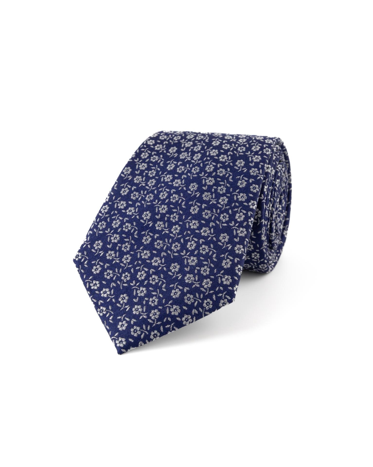 Tmavě modrá hedvábná kravata s květinovým vzorem