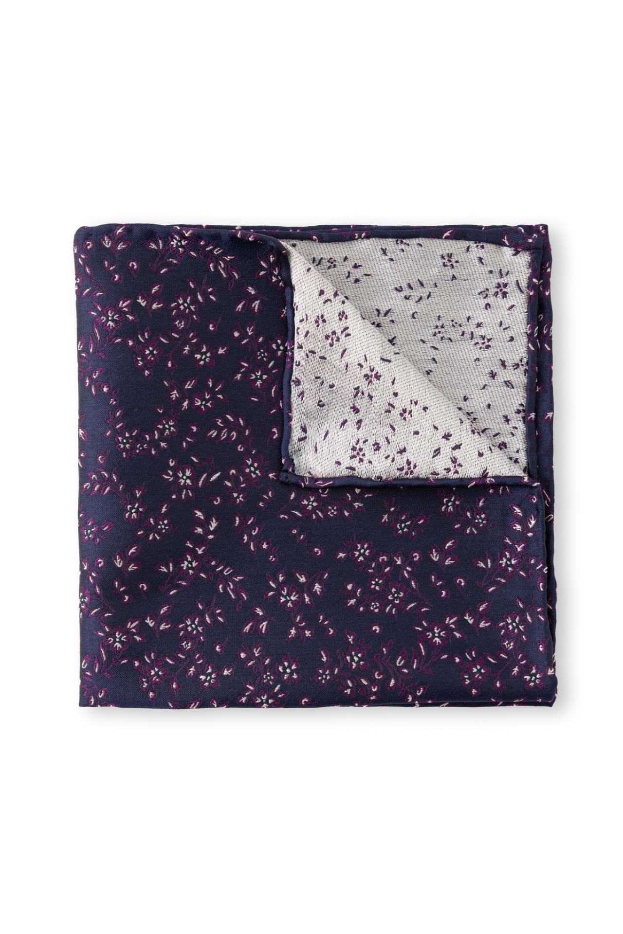 Tmavě modrý hedvábný kapesníček s květinovým vzorem