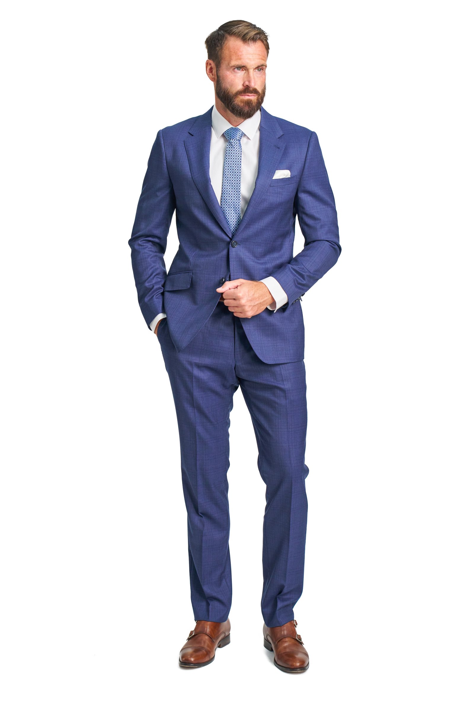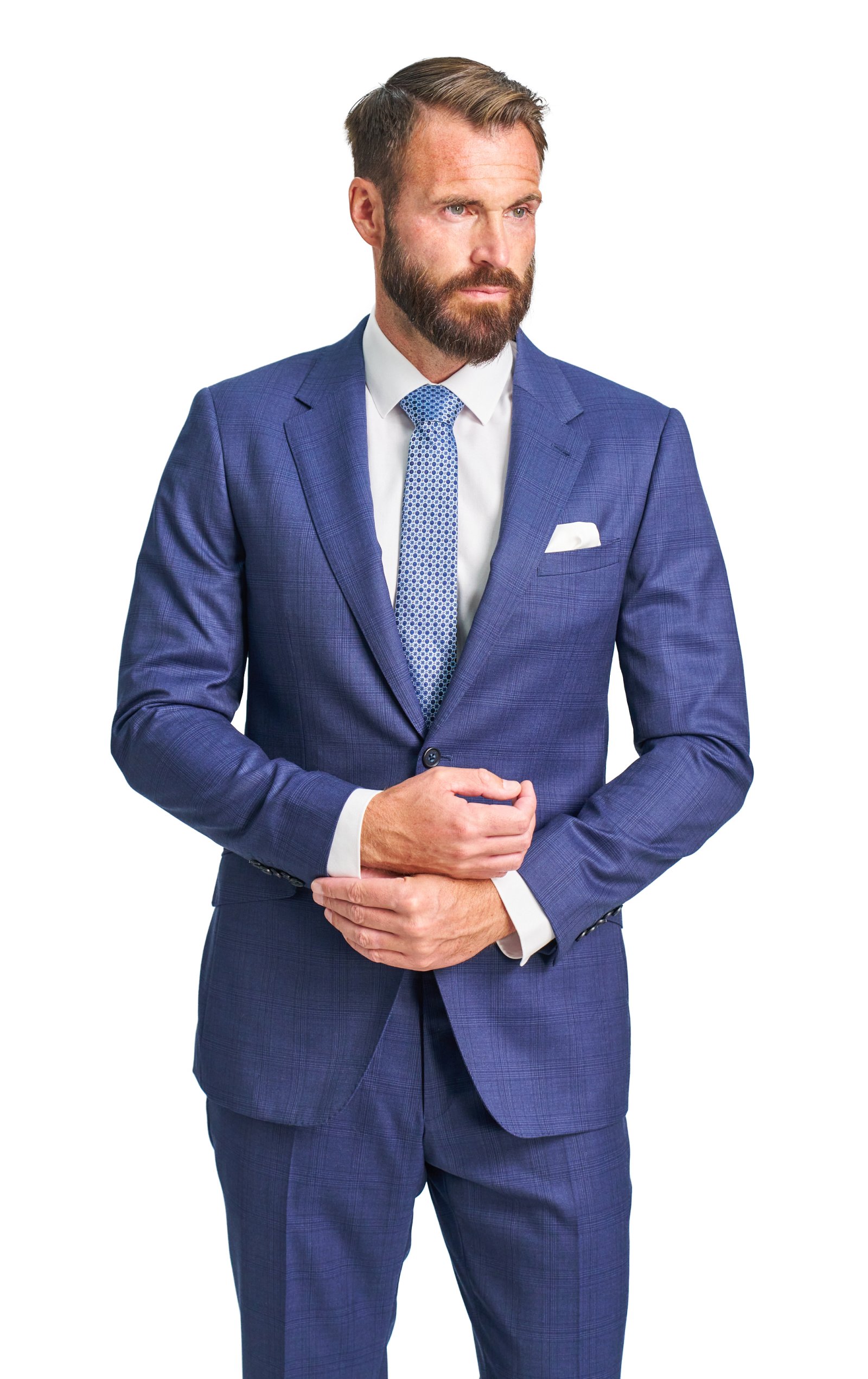 Představujeme oblek Hartford od Anthony's v modrém odstínu s jemnou kostkou a moderním vyštíhleným střihem.