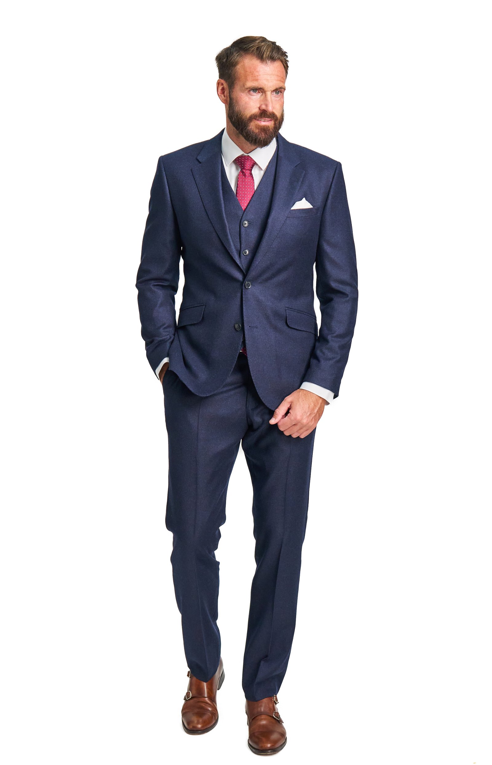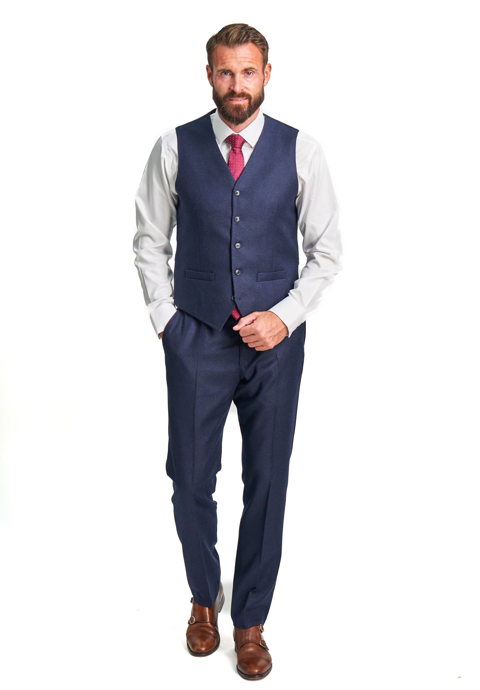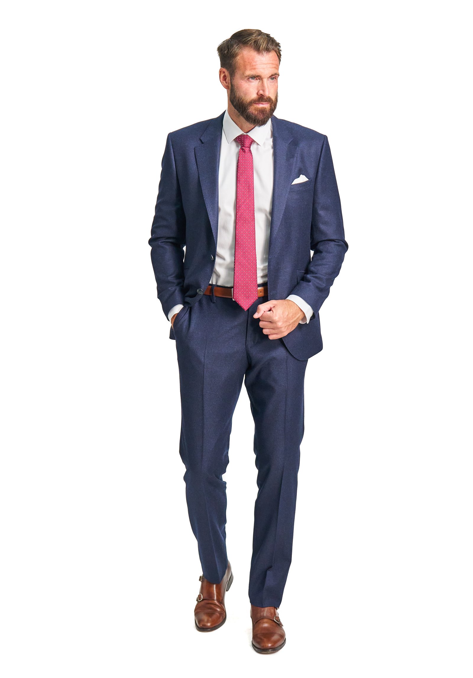 Aby vám kalhoty co nejlépe seděly, naše oblekové kalhoty jsou nezakončené a doupravíme vám je na míru. Díky tomu můžete mít kalhoty přizpůsobené přesně na vámi požadovanou délku. Velikost saka a kalhot můžete libovolně kombinovat.